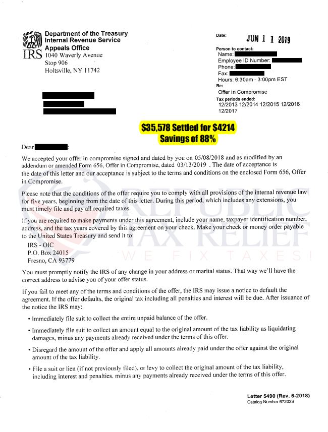 Now sit back and relax! Without IRS Liens and putting your family at risk! Remember to pay your taxes this time around!